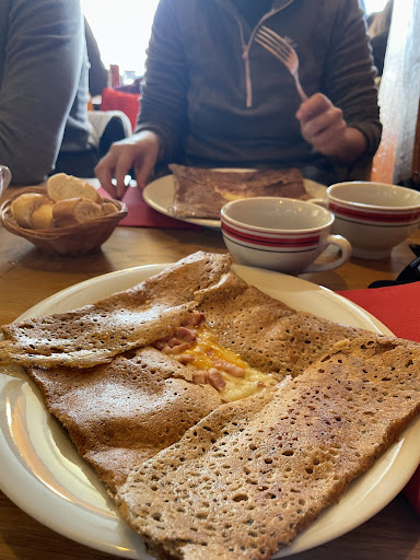 Read moreHola , no aconsejo para nada , había una camarera Española muy amable , pero fue ella a preguntar al Dueño y al ver el Dueño que éramos Españoles - Catalanes le dijo algo en Francés mal humorado y la chica no supo cómo decirnos que no había sitio , bueno al final mi amigo que habla Francés le dijo algo al dueño y nos pudimos sentar a muy pesar del dueño , hasta ahí mal pero pudimos sentar y dar de cenar a nuestros hijos - hijas / ojo con lo que hoy a decir me encontré en mi Creep un trozo de uña ojo automáticamente nos levantamos le dije dos cosas y marchamos de allí por supuesto como señor que soy le dejé encima la mesa un billete más de lo que habíamos pedido y marchamos automáticamente como era tarde y los niñas / niñas tenían que cenar pusimos creperías y me mando a Alp , Osti lo mejor de lo mejor tanto comida como trato .