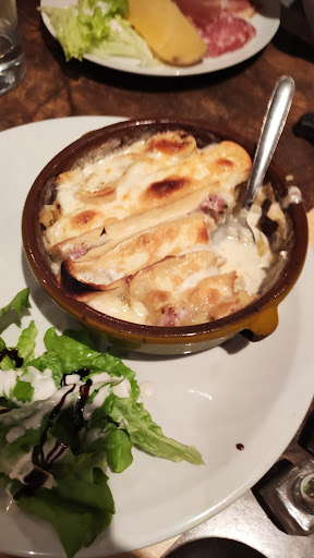 Read moreSoirée entre amis, nous souhaitions profiter d'un repas à base de fromage. Nous tombons sur ce restaurant assez bien noté sur Google avis. Quelle erreur... Ils nous ont demandé de venir pour 19h30 en prétextant une grande tablée qui devait arriver plus tard... Nous commandons 5 raclettes (3 fromages) , 4 fondues, 1 mont d'or. Conclusion ? machines à raclette vieilles, prenant de la place, nous pouvions tout juste poser notre assiette sur la table, l'assiette arrive avec du fromage bas de gamme, raclette, bûche de chèvre et reblochon coupés grossièrement. Donc il ne s'agit pas réellement de fromage à raclette... 1 pomme de terre minuscule, qui ne permet pas de manger correctement la raclette et de la charcuterie bas de gamme, quand on voit les petits producteurs de charcuterie et de fromage locaux de la région, c'est bien dommage. au vue de cette assiette nous demandons de pouvoir avoir des pommes de terre en plus, on nous en ramène, dont une non cuite, et nous indique qu'après ça, ils n'ont plus de Pdt mais qu'on pourra voir des frites ! Quel restaurant de fromage n'a pas assez de Pdt ? côté fondue, fromage bas de gamme également, qui n'arrivaient du coup pas à fondre correctement. Et fondue farineuse, accompagnée de pain rassis. accompagnement d'une salade cuite... En prime, cette fameuse grande table n'est jamais arrivée ! Donc on nous a juste imposé de venir tôt ! Bref, je ne conseille pas du tout de venir dans ce restaurant, même si vous êtes...
