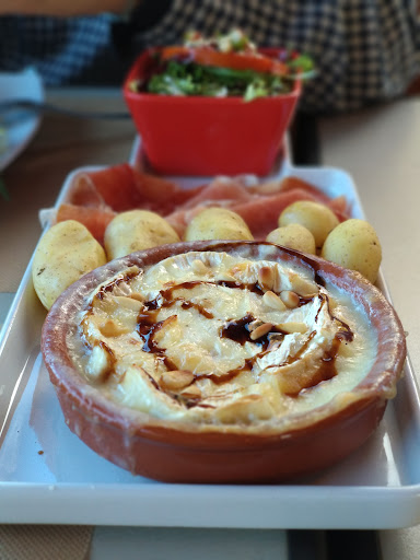 Read moreDécevant : la salade à 16€ avec escalivade et thon est en fait un peu de salade en sachet, 4 tranches de tomates, une grosse cuillerée d'escalivade (faite avec juste poivrons et oignons, et peut-être un peu de tomate), du thon en boîte parsemé dessus et 4 petites tartines grillées avec du fromage fondu....!! Le dessert était mieux, gâteau traditionnel aux amandes bon et une boule de glace au turon, mais idem la portion était petite pour 8 € !, le prix pratiqué par des vrais restaurants et auberges des environs est en dessous. J'ai vu qu'ils demandent 7€ pour une portion de frites !! J'ai été surprise aussi du lieu, ça fait plus snack, que vrai restaurant, qui conviendra aux gens venant du camping ou...