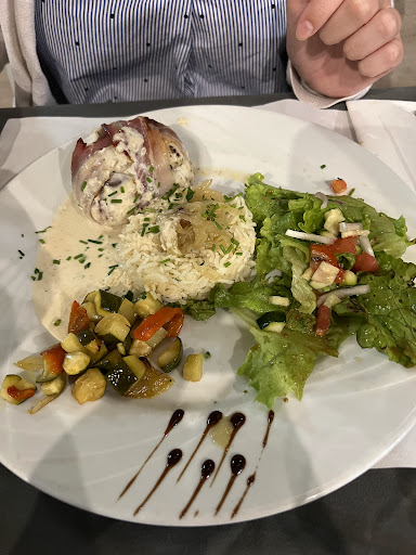 Read moreGorgeous restaurant in an idyllic town in the Pyrenees. We ate the formule, splitting the two choices of mains; one being a lovely plate of grilled porc and home made fries. The other a chicken mafe with lovely peanuty aromatic rice. For dessert we both got the panna cotta with home made peach coulis which can only be described as divine. For 20 euros you will not be able to eat much better than this in France. Could not...