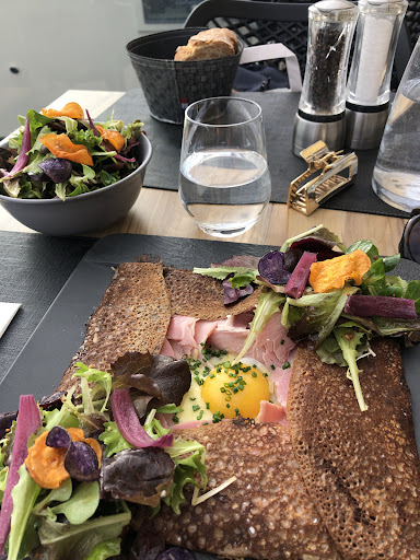 Read moreQuite posh restaurant. Friendly, polite staff. We were served an amuse bouche on the house and then both had a gallette complette, (wholemeal savoury crepe filled with ham, cheese and an egg). Small dressed salad garnish came with it. They look deceptively thin, they are incredibly filling, (and delicious). We shared a 19EURO bottle of sweet cider, which was absolutely delicious, not too sweet either, really good quality. I couldn't manage anything else, which is unusual for me. The decor is modern and very clean lines etc. A friendly couple sat near us and were also very polite, they didn't realise that we could speak French but they wished us a good evening, the...