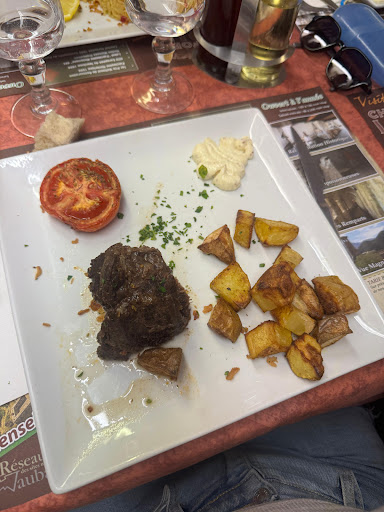 Read moreJe m'excuse au préalable auprès des gérants de cet établissement pour cette faible note, car le patron est très gentil, et sa femme à la caisse aussi.. malheureusement vous avez une équipe d'incompétents qui vous ruine votre établissement. On a bien compris que toutes l'équipe était ennuyée par les touristes, mais qu'ils n'oublient pas que grâce à "ces touristes" vous faites carton plein et qu'ils ont un travail grâce à cela. Pour ma part je suis de la région et j'ai honte de faire découvrir les restaurants de ce magnifique village à mes amis parce que la qualité n'est pas du tout au rendez-vous. Un service déplorable ! Le serveur qui nous dresse la table tient les couverts par les piques de la fourchette, c'est juste immonde ! Nous avons eu les plats avant les boissons ! Des sirops à l'eau posé sans carafes d'eau ! Une eau gazeuse servi tiède sans glaçons facturé presque 5€ ! La présentation des plats laisse à désirer.. on se croit dans une usine ou les bords d'assiettes ne sont même pas fait ! Des serveurs(ses) qui crient autour de notre table, parce qu'ils sont dépassé par l'affluence.. Une serveuse qui dit tout haut à sa collègue devant nous : "je m'en bats les c* je vais me faire une clope" ! Un manque de professionnalisme et de discrétion hors norme ! Quand le service touche à sa fin, toute l'équipe se précipite sur le débarrassage des tables et le redressage au lieu de s'occuper des derniers clients, aucune priorité ! On doit tout réclamer, carafe d'eau, pain.. parce que personne ne se soucie du client.. et un serveur qui se moque ouvertement du patron dans son dos devant la clientèle ! C'est une honte.. Aucun restaurant ouvert ce jour n'est à la hauteur de ce village, pourtant venté dans notre région, j'ai honte de voir des services autant laborieux. Choisissez bien vos employés, c'est un conseil, car ils sont le reflet de votre...