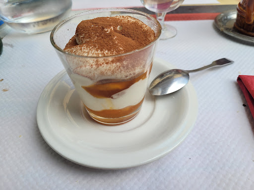 Read moreHar cyklet gennem området i 20 år og er ikke tidligere være forbi. Restauranten ligger på en af de små veje som fører ud af byen nogle hundrede meter fra centrum. Vi kom tilfældigt forbi og besluttede os for at spise frokost her. Valgte dagens menu. 3 retter. Forret. Hjemmelavet terinne. Hovedret. Lår af pentade med figensovs. Dessert. Tiramisu med abrikos. Fin præsentation. Absolut velsmagende. Værtinden. Sød, venlig og imødekommende. Stemning. Vi sad udenfor. I et rolige og skyggefuldt område, med stilfærdige gæster. Det virkede hyggeligt.
