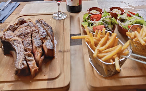 Une magnifique decouverte ! On prend une pub pour ce restaurant chez la coiffeuse et on se dit qu'on va tenter... Waouhhh. Tout est maîtrisé à la perfection. La cuisson de l'entrecôte et son goût au feu de bois. Le tartare de bœuf assaisonné à la perfection. Les petites pommes de terre rissolées maison. Le camembert AOP rôti ! C'était un super moment dans une ambiance détendue au bord de la piscine. Le cadre est génial et le service amical. Franchement nous reviendrons car les prix sont plus que raisonnable. Merci pour ce moment de pur bonheur pour les épicuriens...