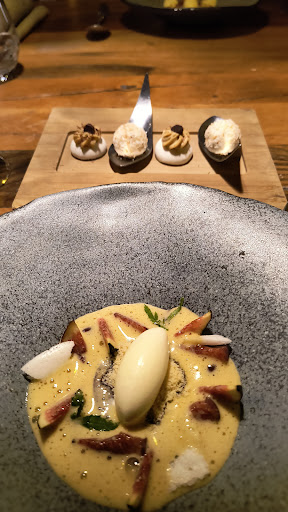 Read moreJe n'aime pas "noter" (que ce soit sous forme d'étoiles ou de chiffres)! Noter: juger, sommairement à mes yeux, quelque expérience/lieu/prestation que ce soit ( me placer en juge ou "prof" dominant). Préfère une appréciation sincère, précise et argumentée! Donc, hier, bien belle soirée: une équipe à notre service attentionnée et diligente (des jeunes gens discrets mais aussi prompts au bavardage, à l'échange en toute simplicité dés lors qu'ils sentent que nous , clients, le souhaitons (ce qui était notre cas!)...Plaisir de ressentir la personnalité de chacun d'eux (4 garçons une fille) derrière leur évidente efficacité. Toujours passionnant et riche de découvertes étonnantes lorsque nous les entendons décire/décrypter précisément ce que nous allons déguster!! ... Agréable lieu, spacieux, haut de plafond, très beaux matériaux (lieu que nous connaissions déjà, mon compagnon et moi, depuis notre première visite en juillet 2022)... Après l'expérience donc d'un menu (en 4 plats) très estival, curiosité totalement satisfaite d'une dégustation (6 plats cette fois, car nous désirions profiter de propositions autour de fruits de mer et/ou poisson) en accord parfait avec la fin de l'automne/l début de l'hiver... Me resteront notamment en mémoire une petite bouchée de rien du tout sur une chips de riz aggrémentée d'un "nuage" de sardine et agrumes, un foie gras poêlé fondant à souhait auréolé d'un jeu de saveurs autour de la betterave, arrosé d'un jus de betterave et... GRENADE (fantastiques couleurs ET saveurs), un petit "rôti" de Saint-Pierre (cuit divinement) aux écailles de champignons de Paris accompagné d'une raviole (si fine et légère!) enrobant un savoureux pied de cep, et enfin, ce qui n'était , nous a-t-on dit, qu'un "pré -dessert", un affriolant mélange de saveurs, textures, températures, autour d'agrumes: peu sucré, éclatant en bouche, frais, si frais et pétillant! Je devrais ajouter aussi qu'il est fondamental à nos yeux de savoir que le pain (moelleux et croustillant, fleurant bon!) vient d'un boulanger d'Ille surTêt (Henri Poch), que les fruits et légumes (bio)viennent tous de maraichers/producteurs locaux, les viandes, poissons, produits laitiers d'éleveurs/fermiers pyrénéens... Nous ne sommes pas si riches... S'offrir un bon restautant a toujours, dans nos vies, été extrêmement rare, exceptionnel, et de fait, cette dépense plutôt fastueuse (pour nous) est assez récente! Nous trouvons que ce qui nous est offert à La Coopérative, à tous points de vue, concorde, largement, à ce que nous payons... Bref... que dire, sinon notre désir de tenter une nouvelle expérience... PRINTANIÈRE (!!) la prochaine fois,...