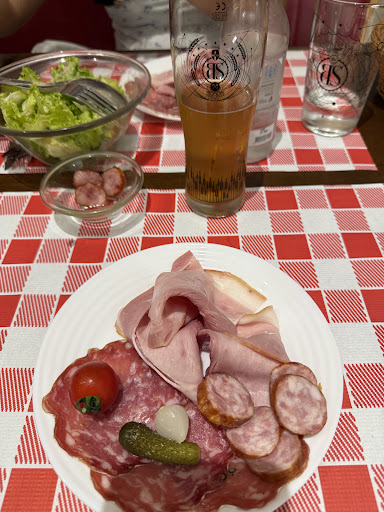 The young lady (actually an older woman, but her enthusiasm and swift actions could outmatch any young person, she was incredibly energetic!) set our table and served us the starters, which were on the house. It included a fresh salad with some sausage and cured pork cuts, absolutely delicious.
