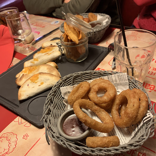 Ă ma grande surprise aprĂšs avoir Ă©tĂ© rĂ©clamĂ© mon assiette je l'ai enfin retrouvĂ© elle avait dĂ» ĂȘtre mise de cĂŽtĂ© dans un appareil pour maintenir au chaud du coup ma cuisson n'Ă©tait plus du tout bleu et les crispy n'Ă©tait mĂȘme pas cuit... Du coup je n'ai mangĂ© qu'un peu de mon entrecĂŽte et quelques frites au cheddar qui Ă©tait vraiment horrible au goĂ»t !!! Et de plus !! Ma femme et moi-mĂȘme avons Ă©tĂ© barbouillĂ© toute la nuit et encore aujourd'hui et nous pensons que le cheddar et le bacon on dĂ» jouer dans tout cela.