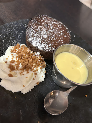 Première et dernière fois ! Le foie gras était vraiment pas bon , mes fruits de mer étaient froid dans mon risotto qui était lui chaud produits qui sortaient je suppose de décongélation … je m’attendais à des belles gambas et non des petites crevettes … le service était très long également les plats ne sont pas arrivés en meme temps et en plus de cela un plat est arrivé avec une viande froide on a demandé à la réchauffer on nous a apporter une nouvelle au bout de 20 min quand tout le monde avait finit de manger ! On a pris quelques dessert et là non plus ce n’était pas à la hauteur , ma fille a pris un coulant au chocolat mais il s’est avéré être assez dur et bien cuit pas de coulant donc mais une crème anglaise qui éponge l’assiette… le tiramisu framboise spéculos ( j’ai pas senti du tout le spéculos ) la crème était assez lourde et n’était pas assez froide . Nous avons expliqué notre mécontentement et le serveur a proposé une liqueur … on attendait plutôt un geste commercial… je vous conseille de goûter de temps en temps les plats qui sortent de votre cuisine . Pour les prix pratiqués je trouve sa...