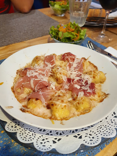 J'ai été déçu par la quantité de nourriture au vu du prix (3850F pour un petit filet de boeuf + un petit ramequin de flan que je qualifierais d'entremet), on nous a aussi apporté un autre ramequin un peu plus grand (taille normale pour une personne) avec un gratin de PDT qu'on nous a servi à se partager pour deux (première fois que j'entends ça), mais sinon rien d'autre, pas de légumes (carottes, haricots verts ou autre accompagnement classique), ça fait léger.