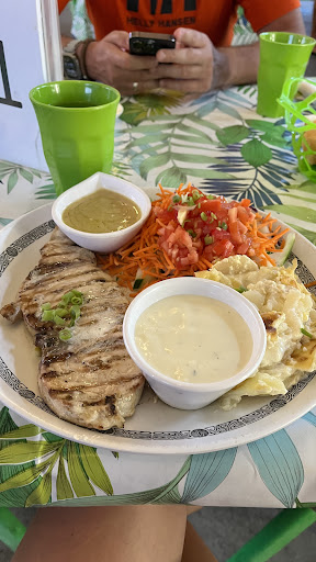I took my food to go and the service was quick and easy- they even pulled up a chair for me while I waited. The grilled swordfish was DELICIOUS and came with bbq sauce (best I’ve ever had??) and a huge amount of butter! Plus I got to choose 2 sides- I picked garlic rice and potato salad. Both were very good and everything was delicious the second time around when I ate my leftovers. I even tried to return a few nights later to order it all again but they were unfortunately closed. Would definitely...