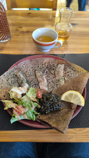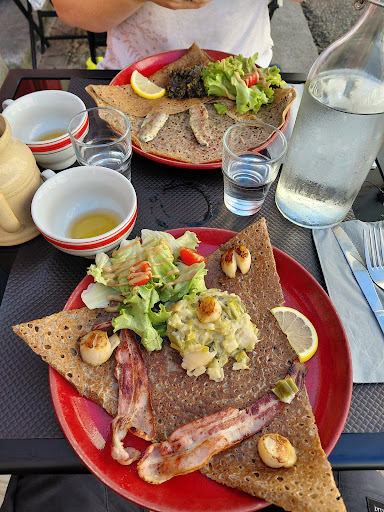 Read moreMiam ! Une vraie claque gustative. J’ai goûté une crêpe au blé noir garnie de sardines fraîches marinées, avec un tartare d’algues au curry : surprenant et absolument délicieux. En dessert, une crêpe au froment du moment avec fraises fraîches, glace vanille, chocolat maison et chantilly... tellement bonne que j’en ai repris une autre, cette fois au caramel beurre salé maison. Le cidre Kerné, fruité et local, accompagne parfaitement le tout. Service rapide et impeccable, prix très doux. La salle est simple et sans prétention, mais ici, pas besoin de chichis : on vient pour bien manger, et on repart conquis ! Ah une dernière chose : il faut...