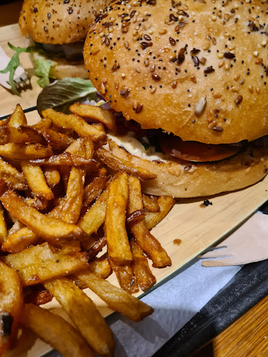 L'accueil est agrĂ©able, un choix assez variĂ© et original de burgers il y en a pour tout les goĂ»ts. La salle pour manger est assez grande et bien dĂ©corĂ©, c'est moderne. Je pensais que la prĂ©sentation de table serait un peu plus haut de gamme (pas de couvert ni d'assiette), en effet il faut aller prendre des couverts en bois dans le couloir il ne coupe pas trĂšs bien .. c'est dommage. Il n'y a pas d'assiettes mais ce n'est pas un inconvĂ©nient. Le burger est super bon avec du goĂ»t et on ne trouve pas ces saveurs dans tout les burgers. Des produits qui ont l'air frais et certain sont bios. Les frites sont un peu trop imbibĂ© d'huile mais sont maison et trĂšs bonne. Les prix sont quand mĂȘme un peu Ă©levĂ©s mais reste...