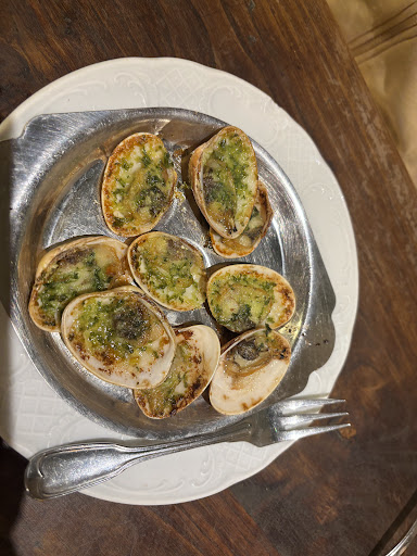 Read moreLovely courtyard setting shared with a creperie. The place was packed out and buzzing so in we went. Nice, fun waiter. Terrine starter was enjoyable. Carafe of Bergerac red was tasty and good value. I had rabbit in prune sauce - delicious but dry. My wife had beef and frites - awful. Couldn't cut it and certainly couldn't chew it. You would have to be Dracula to get your teeth into it. Handed it back. She was offered an alternative but refused. When it came to the bill they tried to charge us for her mains and offered us the starter for free. What a joke. Eventually settled for not paying for her meal. No apology. Not a...
