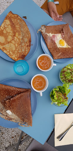 On était de passage et nous cherchions une crêperie dans le coin, les notes et avis nous ont poussé à passer devant et nous avons été convaincu lorsque nous avons découvert la terrasse ensoleillée et l'espace jeu pour jeune enfant (idéal pour notre bébé de 16 mois), de plus la formule semaine à 9€50 (crêpe salée + crêpe sucrée + bolée) est intéressante.