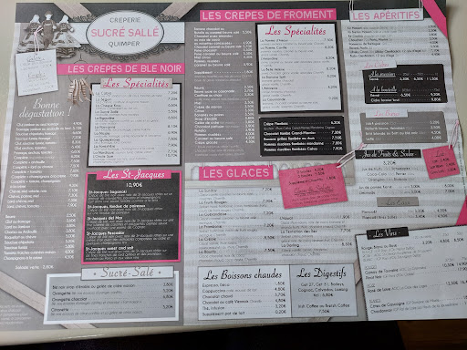 Read moreAccueillis par un cerbère à l'entrée (c'est vraisemblablement la patronne), qui nous aboie dessus en nous disant "il n'y a plus de St-Jacques" on nous place et là, on nous ordonne(car il n'y a pas d'autre terme)de choisir les crêpes salées et sucrées dans un temps record de 10 minutes (nous sommes accompagnés d'Enfants) nous sommes serrés, très près des autres tables. Il est un peu plus de 14 heures et on nous dit que les billigs vont bientôt être arrêtées, nous faisant comprendre qu'il faudra se dépêcher pour manger. Je suis scandalisée, car chère Madame quant on dirige un établissement de la sorte et que l'on se trouve en période de vacances scolaires, deux solutions se présentent à vous soit vous êtes en service continu soit vous posez un écriteau en précisant que les billigs s'arrêtent à telle heure. Cette dame parle très mal à ses Employés et de même aux Clients. Elle m'a dit de me taire à deux reprises, j'ai donc quitté la table en lui laissant sa crêpe sur les bras. Je suis de Quimper, je ne remettrai plus les pieds dans cette crêperie qui pourtant m'avait été recommandée par des Collègues travaillant sur Quimper. D'après les Gens qui m'accompagnaient, les crêpes étaient bonnes mais je n'ai pas pu le constater par moi-même. A éviter !!!! les autres Crêperies de la Place au Beurre ont un accueil beaucoup plus chaleureux et les crêpes sont succulentes, par contre cette crêperie est à éviter à tout...