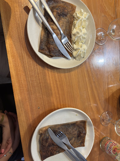 Ein kleiner Familienbetrieb auf dem Weg zum fast westlichsten Zipfel der Bretagne,oder, um genau zu sein, von Frankreich, dem Point du Raz. Wer also durch Plogoff fährt, sollte auf der rechten Seite auf ein "geöffnet" Schildchen achten. Die Creperie liegt etwas zurückgesetzt an einer Straßenecke. Das Innere lädt in rustikalem Stil ein, sich niederzulassen und die Hektik der Touristen zu vergessen. Mein Mann aß eine Galett mit Lachs und ich ein Crepé, das beste Crepé meines Lebens. Der Teig hauchdünn und knusprig, die Apfelscheiben aufgeschichtet und abgedeckt und schließlich flambiert. Beim Essen duftete der Alkohol, statt wie sonst zu beißen. Dass wir vom Cap wegen Nebels nicht viel zu sehen bekamen, war egal. Wir hatten unser Cap...