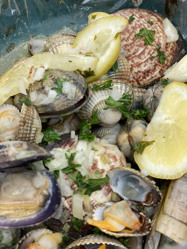 Mon avis va être plutôt mitigé. Groupe familial de 14 en terrasse. Pas de vue mer mais sur la place centrale comme l'ensemble des restaurants de la zone. Terrasse plutôt bien couverte avec des parasols larges et costauds.