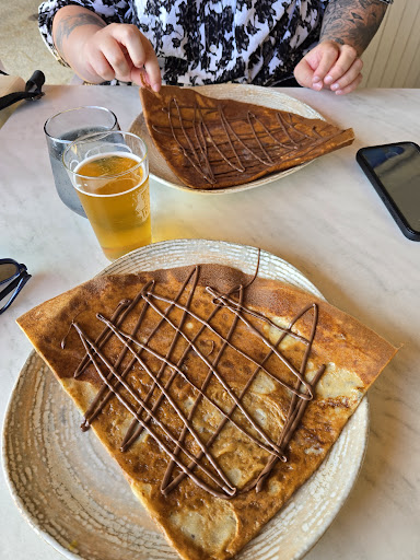 Read moreJuste bon, serveur agréable et souriant. On vous donne une tablette pour faire votre choix mais en fait il n y a pas de choix, mais vous pouvez faire votre propre crepre. Geniale comme concept mais quand la crepe seule est a 3 euros et que CHAQUE ingredient supplementaire est a 2 euros voir plus, vous vous retrouvez avec une crepe au beurre avec caramel beurre sale a 5,50 euros. Quand le serveur arrive on se dit la tablette va transmettre à la cuisine votre commande, et non, donc en fait c est juste de la poudre aux yeux. Et la commence l attente, 30 minutes pour 3 glaces et 1 crepe, et c est la deconvenue. le prix extrêmement élevé vous donne l impression d être une vache à lait. A 12 euros 50 la glace on s attend à une glace de qualité avec la quantité qui va avec, hé bah non, glace classique sans présentation exceptionnelle et minimaliste. On attend toujours la boisson. Résultat pour 3 glaces, 1 crepe et 1 cappucino = 39 euros. Piège à touristes rien de...
