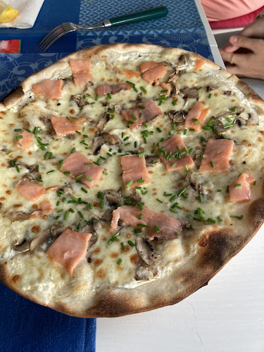Best Pizza in Town? Vielleicht. Auf jeden Fall eine Pizza wert. Wir kamen ganz ohne Französischkenntnisse in diesen v. a. "Abholpizzaexpress" und bestellten bei der sehr freundlichen, leider nicht der englischen Sprache mächtigen Verkäuferin zwei Pizzen und eine Flasche Wein mit dem Hinweis darauf, dass wir gerne im Innenhof essen würden. Die Hand-und-Fuß-Konversation dauerte ein paar Minuten, und dann ging es los: wir saßen im kleinen Innenhof, bekamen zum Wein zwei Wassergläser und warteten geduldig auf die Pizzen. Etwa 20 Minuten später wurden diese serviert und waren ... lecker. Bester Teig, guter Belag (ausgewogen und nicht fettig) und angemessen im Preis. Zwei wirklich gute Pizzen und eine Flasche genießbaren Rotweins (Bordeaux) für 31,-- Euro. Wir waren zufrieden und können den Pizzaexpress (insbesondere als Lieferservice bzw. nach Vorbestellung zum Selbstabholen) bestens empfehlen. Vor-Ort-Essen ist auch okay und ein wenig - sofern eine Sprachbarriere existiert - abenteuerlich; aber so ist nunmal Urlaub. Uns hat es...
