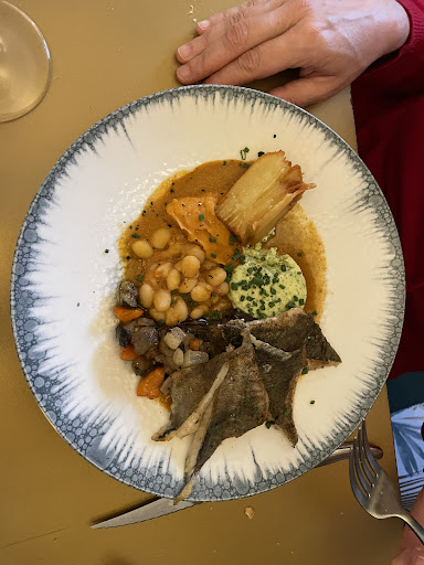 Plat changé au dernier moment pour finalement récupérer les « restes » du midi à savoir un poisson de qualité et de tarif au kilo incomparables à la proposition alléchante de la personne en charge de prendre les commandes (très conviviale cependant au vu de son expérience en devenir), et bien évidemment du menu sur le tableau éphémère ainsi que la carte historiquement imprimée de cette soirée dans un lieu bien situé, il faut le reconnaître !