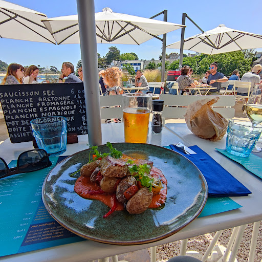 Cannot remember a more pleasant lunch in terms of food, service and setting. Beautiful seafood bistro with terrace overlooking the small port of Sainte-Marine. It's not obligatory, but the experiences will be improved by getting the ferry from Béndodet (runs from April, on the hour and half hour from Béndodet, crossing takes 5 mins, €4 return). Substantial lunch for 3 including main, dessert, coffee and a glass of wine each came to €88. The Breizh tiramisu is one of the best...