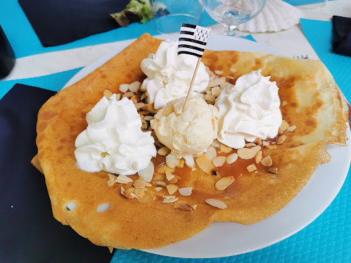 Read moreNous aimons beaucoup ce p’tit café. Liked it from the moment we sat down. Excellent “menu enfant” €12 (saucisse et frites; sirop à l’eau; glace 2 boules). Galette de blé noir complète €7. Delicious salad accompaniment with piquant dressing. Wonderful and diverse ice cream flavours incl sablé Breton. Friendly and prompt service. Lovely outdoor terrace, shaded, in a quieter area, not the main tourist street. Definitely...