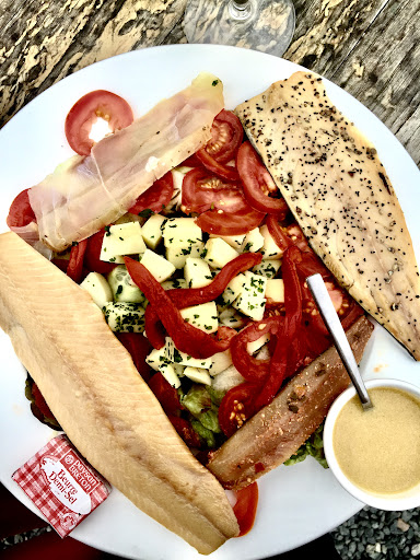 To accompany the meal, there’s a nice selection of beers, from regional brews to well-known labels, offering something for every taste. Seating is available both inside and on a scenic terrace with sea views, and while you can often find a table, booking is strongly recommended.