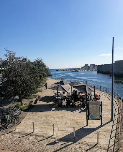 Il est vraiment dommage que les deux terrasses de l'établissement soient exclusivement dressées et réservées pour dîner à partir de 18h45. Impossibilité de boire un verre...en expliquant que nous ne squatterons la table . Le personnel aimable propose éventuellement une bière à emporter dans un gobelet publicitaire en plastique souple . Boisson somme toute acceptée compte tenu de la chaleur...est bu sur le banc public à coté de cette terrasse...qui aura été en grande partie à moitié vide durant le quart d'heure de pause. Une approche commerciale très particulière...et d'autant plus surprenante que le prix à emporter de ces 20cl de pression ordinaire sont plus onéreux que d'être assis à une table avec un service dans un verre de 25cl avec une belle collerette de mousse et un sous-boc affichée...à 2,90€. Cette boisson sans service m'aura coutée 3€00...? Le nom de l'enseigne "Pourquoi pas" S'explique peut-être cela ? Le même prix qu'une bière bien installée en terrasse dans le centre de Concarneau. Remarque sur le prix faite au serveur saisonnier surpris, qui me précise ...j'observe les directives du gérant. Avec cette approche anti-commerciale cela m'a dissuadé de réserver une table pour tester la carte, qui reste somme toute d'un coût au-dessus de la...