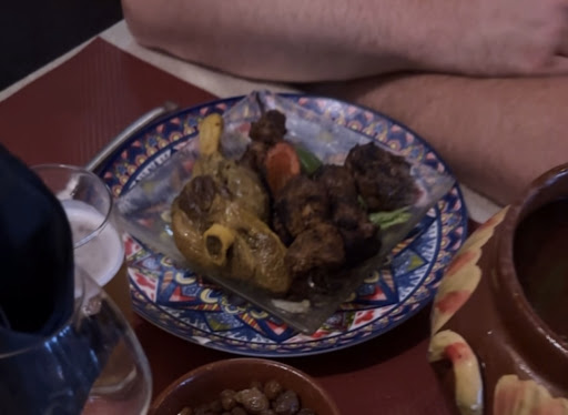 Le seul bémol, frustrant : Il est dommage de ne pas proposer aux clients de manger le tajine de la bonne façon, c'est à dire avec le pain, avec les mains, et sans semoule. Peut être pourriez vous laisser le choix entre le métal d'une fourchette, et du pain afin que les gens comprennent pourquoi le tajine se mange ainsi. C'est tellement meilleur ainsi ! Quitte à payer un supplément pour le pain marocain, ce serait bien de l'avoir en proposition sur la carte.