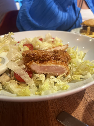 Read moreArriver à 19h15, accueil très sympathique, prise de commande pour l'apero ainsi que le service fût correct (léger retard sur le service de la planche apero ! Peut être un oublie ?!) A 20h on nous débarrasse et nous informe que les deux burger chicken on était lancé ! 20h10 un grand groupe de touristes arrive et s'installe ! Et la on voit que leur plat sorte.. Nous avons une séance à 20h40, j'interpelle le serveur pour savoir où en n'est nos burger, il me dit qu'il arrive.. 20h35 nos burger arrive est la déception total, on nous a servi des pains beaucoup trop cuit et le cheddar complètement coller au pain qui lui même étais dur avec un poulet pané, une rondelle de tomate et un peu de salade, disparition du bacon et de la sauce tartare annoncer sur la carte des burger... Résultat nous avons manger que le poulet et quelque frite, heureusement que l'ont avait ketchup et mayo à disposition... Certes une grande tabler de touriste est arriver d'où le retard de notre plat, je suis humain, je peut comprendre c'était le reuch pour les serveur et cuisto mais dans ce cas l'arrivée de notre plat doit être complet comme annoncer sur la carte.