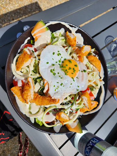 Read moreVenus pour l'apéro, nous avons beaucoup apprécié le cadre de la terrasse "ambiance tropicale" avec vue sur les bateaux de plaisance. Installés confortablement, nous avons été accueillis par une équipe souriante, attentive et dynamique. Avec l'apéro nous avons dégusté de savoureux accras de la mer (petit bémol: ils étaient servis dans une barquette en carton... nous n'avons pas compri pourquoi! Nous ne sommes pas au snack... et au niveau écologie c'est pas terrible non plus, ça fait de l'emballage pour rien :( Sinon, nous y retournerions avec plaisir pour un repas dans le bel intérieur ou au balcon, en espérant être servis dans de vraies...