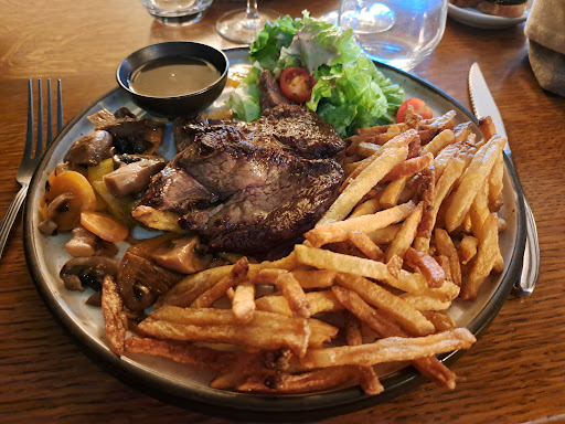 Read moreCuisine simple, je dirais même rustique mais sans être péjoratif. On retrouve pas mal d'incontournables du repas du restaurant du dimanche midi avec les parents et grands-parents. Viandes grillées, frites maison, entrecôte, souris d'agneau, cô te de bœuf, magret, légumes de saison, foie gras et confiture de fraises (très bon), le tout avec des produits de chez nous. J'ai trouvé cela bon, simple et classique. Le service est vraiment efficace et Agréable, la carte des vins assez bien choisie pour le menu. A faire sans hésiter quand on veut revenir aux fondamentaux. Juste un bémol sur l'entrée fourme et guacamole, le...