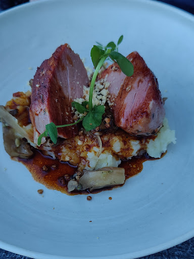 Dans un trĂšs joli cadre, avec une vue enchanteresse sur l'Ile Tristan depuis la terrasse, l'accueil est dĂ©jĂ d'une rare gentillesse : le serveur et toutes les serveuses sont trĂšs souriants, vraiment gentils et attentionnĂ©s, mais sans aucune obsĂ©quiositĂ©. Et si jamais le vent se lĂšve, quand vous ĂȘtes en terrasse, ils vous proposent un plaid, bien agrĂ©able... Le service est rapide et efficace, pas d'attente entre les plats. Quant Ă la carte, si elle propose Ă©videmment les incontournables assiettes de fruits de mer ainsi que de copieuses assiettes de moules (avec des sauces trĂšs variĂ©es) et de dĂ©licieuses frites vraiment "maison", elle offre aussi de belles alternatives avec des salades "Poke Bowls" Ă composer soi-mĂȘme selon ses goĂ»ts (y compris avec une proposition vĂ©gĂ©tarienne) et un incroyable choix de burgers, accompagnĂ©s de salade coleslaw, mĂȘme un "Breizh" avec thon et salicornes ! Mais surtout, ce restaurant propose en plus quelques plats de viande ou de poisson, beaucoup plus travaillĂ©s et sophistiquĂ©s, ce qui fait de lui bien plus qu'une brasserie de bord de mer... Et tous ces plats sont accompagnĂ©s de lĂ©gumes verts, ce qui est bien apprĂ©ciable et pas si frĂ©quent : purĂ©e de cĂ©leri, pleurotes, shiitakĂ©, courgettes, patates douces, chou pak choi, aubergines, fenouil... Pour notre part, nous avons essayĂ© : le houmous de carottes et le tartare de thon, puis la poitrine de cochon confite Ă basse tempĂ©rature et les moules bretonnes, puis le "Trop'bon choco" et une coupe de glaces artisanales au lait cru fermier. Tout Ă©tait trĂšs bon, de l'entrĂ©e au dessert, avec une mention spĂ©ciale pour la poitrine confite qui Ă©tait un vĂ©ritable rĂ©gal : pas du tout Ă©cĆurante de gras, comme c'est souvent le cas, juste grillĂ©e Ă l'extĂ©rieur et fondante Ă l'intĂ©rieur, avec un dĂ©licieux crĂ©meux de cĂ©leri. Vraiment Ă tomber ! FĂ©licitations au Chef et Ă son Ă©quipe !