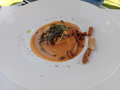 Read moreNous nous réjouissions de venir dîner dans ce restaurant en ayant vu les photos et lu des avis, et avons fait un détour. Le chef a dû changer depuis les avis : Très déçus : la soupe de poisson ne vaut pas le détour, servie avec des croûtons industriels et de l'emmental commun, un ersatz de salade asiatique aux crevettes avec trois crevettes, 4 rondelles de concombre, 4 rondelles de radis, du vermicelle de riz du supermarché, une sauce soja salée sans qualité, de la poudre de gingembre et 3 feuilles de salade, une saucisse de molène fumée aux algues qui n'est vraiment pas une réussite, un dessert qui était un assemblage. Seul le poisson était bon, ainsi que le spritz, d'ailleurs facturé plus cher qu'à Venise (prix 2024). Nous avons payé 106 euros pour 2, 2 menus à 36 euros, deux aperos, 2 verres de vin. Excessivement trop cher par rapport au travail des mets. C'est le restaurant le plus cher que nous ayons fait depuis 15 jours (14) à la Rochelle, aux sables d'olonne et sur l'île de Ré, et indubitablement le moins bien rapport qualité prix. Heureusement le serveur était super. Si vous voulez mettre le prix pour un menu travaillé, je ne vous recommande pas. Pour 40 euros, on aurait pu s'en satisfaire, pour 106 euros...