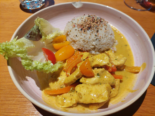 J'ai choisi un curry au poulet, un plat léger non épicé que j'ai apprécié. Par contre, pour les brochettes, mon conjoint en avait une délicieuse et l'autre sans goût. Malgré le fait que celles-ci sont marinées ensemble, le résultat final n'était pas le même. Dommage car les plats sont un peu chers.