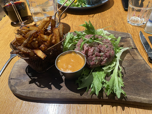 This place is simply the best restaurant in Quimperlé. Benoit was an amazing host, being extra special by checking with the kitchen how could they modify a tapas for my wife which is celiac to be able to have it and just being very nice through the whole meal. The tartare was amazing, as my wife rumsteack heart. The chips cooked with beef fat are the most amazing chips I ever tried. This place is amazing do...