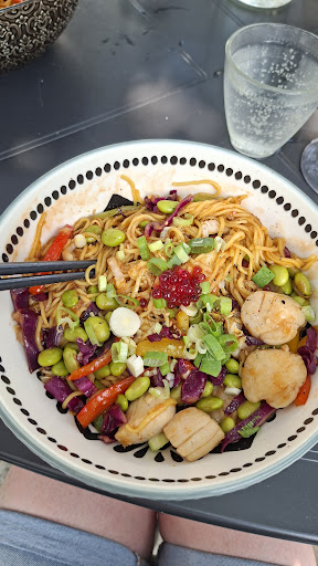 Ambiance sympa pour un dîner en famille ou entre amis. Les tables sont grandes et suffisamment espacées pour qu'on s'entende parler.