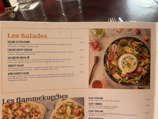 Un endroit sympa mais que je trouve plus approprié pour un petit verre entre amis ou collègues. J’y suis pour ma part allé pour dîner. Le premier accueil y était chaleureux, le lieu est très sympa. Cependant le second serveur me paraissait moins souriant, presque froid. Arrive le moment des desserts, nous décidons de ne pas en prendre. Le serveur commence à débarrasser notre table devant nous, nous faisant comprendre qu’il est temps de partir. Celui-ci nous encaisse, nous propose de diviser en trois (nous étions trois amis) et nous fait payer plus que ce pour quoi nous avions commandé. Ce même serveur, bien que ce soient des détails me direz-vous, ne nous remercie pas, ne souhaite une bonne soirée, pas un sourire, je trouve que c’est dommage. Pour moi l’accueil et la chaleur de l’équipe compte tout autant que la qualité des boissons et plats. Les clients doivent être à l’aise ! Concernant la qualité du plat, le plat de mon amie est arrivé froid. Je trouve les plats plutôt pauvres, manquent de goût. J’ai pris une flam’ chèvre miel : goût du chèvre ? Goût du miel ? A peine présents. Bref, au premier abord je trouvais les prix corrects, une fois la soirée terminée je n’avais plus le même avis. La qualité n’était pas aussi élevée que le prix.