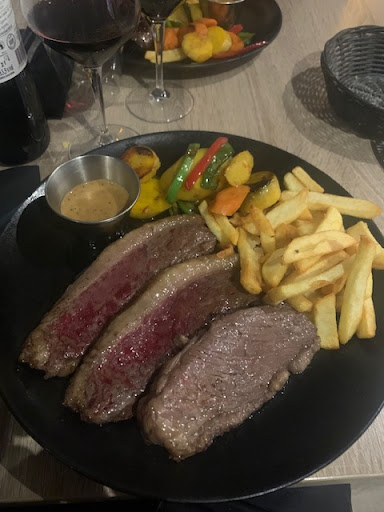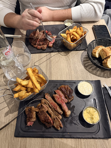 Read moreL'endroit est sympa, classe et la nourriture servie est globalement bonne. L'accueil est très bon, et l'ambiance est réussie. Le gros bémol reste le prix par rapport à la quantité servie. C'est un restaurant de viande de qualité, donc c'est de base un certain budget bien évidemment. (qui monte assez vite si vous prenez des boissons comme du vin par exemple). Mais les portions de frites et de sauce sont à mon goût très faibles, voir insuffisantes pour le prix payé (comptez entre 20 et 30€). Ce n'est clairement pas la matière première la plus chère de l'assiette et malheureusement, si vous ne prenez qu'un plat (donc ni entrée ni dessert), vous ressortirez très probablement de cet établissement en ayant faim, ce qui a été mon cas ... Cependant, la sélection de vin est bonne et les desserts ont l'air délicieux. Le patron nous a gentille ment demandé si nous voulions d'autres frites, nous avons dit oui et nous avons eu une minuscule barquette supplémentaire à se diviser en 7, soit 2-3 frites chacun ... Le geste est très appréciable mais je ne m'attendais pas vraiment à ce résultat.