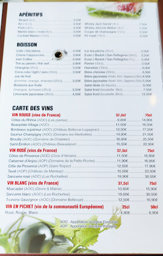 Read moreLe restaurant en lui mĂȘme est assez bien dĂ©corĂ© mais pas moderne. Le service est trĂšs long mais les employĂ©s agrĂ©ables. CĂŽtĂ© cuisine: Les makis California (M2) sont moins bons qu'en supermarchĂ© avec moins de graines de sĂ©sames. (Beaucoup de riz, peu de garniture peu de saveur, et un peu brouillons) La soupe miso sans saveur, la salade de choux moyenne. Le poulet grillĂ© sur riz (P5) viande sĂšche saveur lĂ©gere soja , salade amĂšre et peu de riz. Pour conclure le tarif dans ce restaurant japonais Ă la carte est passable mais en plus honnereux si l'on compare Ă un buffet Ă volontĂ©. Pas de jeux pour enfants sur place, pas d'installation pour changer bĂ©bĂ© dans les WC.