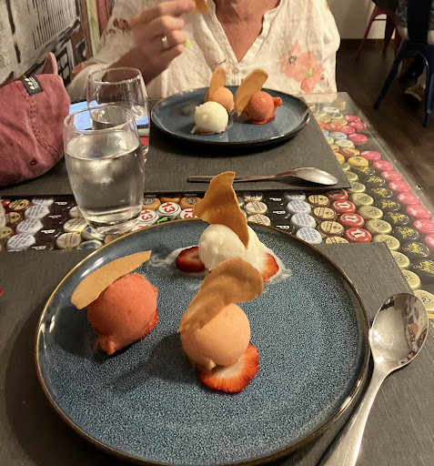 Read moreMême si le choix dans le menu du jour s’était drastiquement réduit à notre arrivée il n’en reste pas moins vrai que ce restaurant à la singulière déco offre un excellent rapport qualité prix dès lors que l’on considère la présentation ultra soignée des assiettes de l’entrée au dessert. Salade de gésiers, filet de lieu noir sauce échalotes et sorbets, tout s’est révélé beau à regarder et délicieux. Une mention particulière à la jeune femme en salle qui assure un service précis et souriant. Au final une très très...