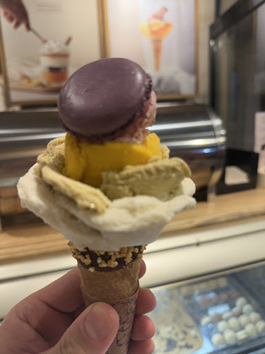 Read moreVery good ice cream. The macarons were a pleasant surprise (we thought they would be more of a tourist gimmick but no): they were very soft and tasty and the very cold ince in the middle was a great complement. The rose shape is "interesting" but it means you get a lot more of one flavor than the other so make sure to start by asking for the flavor you prefer. We asked for the "signature" ice-cream which is supposed to come with a special cone but we got regular cones - not sure if we paid the extra euro for these special cones but always a bit disappointing not to get what...