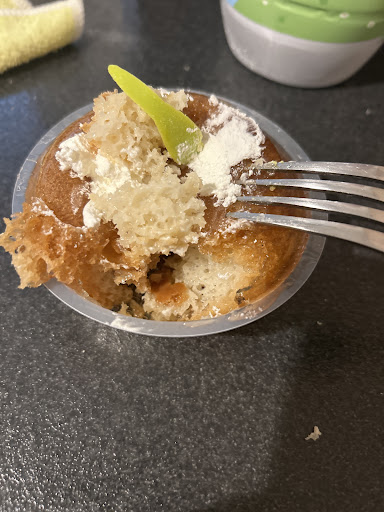 Gênée par la situation et par le fait qu'elle ait spécialement découpé une part pour moi, j'ai fini par l'acheter. Ce qui m'a également surprise, c'est quel ne m’ait donné le prix seulement au moment de payer. La part était à 3,50 €. Bien que je sois consciente des tarifs pratiqués, le rapport qualité-prix m'a semblé injustifié. Le goût de la galette et son aspect ne correspondaient pas à mes attentes. J'ai eu l'impression qu'il s'agissait d'une galette industrielle, car la frangipane était peu présente et la cuisson insuffisante.
