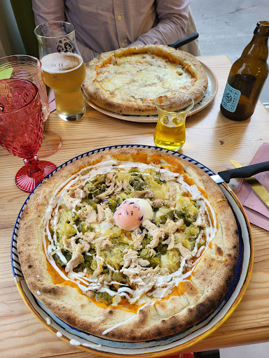 Nous y sommes allĂ©s un soir, nous avions vu sur les rĂ©seaux sociaux que ce joli restaurant avait ouvert rĂ©cemment, nous Ă©tions curieux d'y passer pour goĂ»ter les bons produits locaux, ainsi que le bar Ă huile et la sauce tomate maison sur les pizzas. Nous n'avons pas Ă©tĂ© déçu ! ce fĂ»t un rĂ©gal ! je recommande la pizza bianchi et la alcaraz ainsi que la burrata Ă partager avec son pesto maison et ses noisettes en entrĂ©e ! Nous avons eu un coup de chance nous avions appelĂ© le matin pour le soir et il y avait encore de la place, restaurant avec peu de place et trĂšs prisĂ©, je recommande de rĂ©server Ă l'avance ou Ă©galement de prendre Ă emporter ! Le service est trĂšs chaleureux, l'ambiance avec ces vieilles musiques rend le cadre du lieu intimiste et convivial, si vous souhaitez passer une bonne soirĂ©e, manger de bons produits et sortir le ventre rempli de bonnes choses, je vous recommande ce restaurant oĂč je retournerais pour goĂ»ter les autres plats...