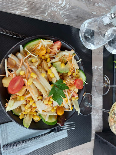 Très belle rencontre, personnel charmant qui s'adapte aux demandes, notamment à ma demande de salade végétarienne à base de pomme de terre: une explosion de saveurs, de l'avocat, de la salade, tomates, etc. et surtout, de sublimes petites pommes de terre croustillantes.