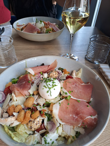 Wonderful food and superb service in relaxed, spacious and comfortable setting. Super friendly/helpful French owner with Italian heritage serving small but fantastic menu of Italian classics delivered with French flair and precision. Unusual and informal dining setting in half of big space in quiet area that feels like a science/business park - restaurant is in on half of a deli shop selling Italian produce, especially gourmet cured hams/meats. Super comfy big chairs that are almost like armchairs with lots of space between tables. Run like you are guests in someone's home and large amounts of care and love goes into the food and service. All dishes superb from charcuterie to pastas, lasagane, porchetta, caesar salad, raspberry sorbet & amazing pana cotta. Owner/chef even made special pasta dishes for the kids. All portions very large and great value. Can't recommend this place highly enough as the perfect spot for refuelling with great/good value food when in or passing...