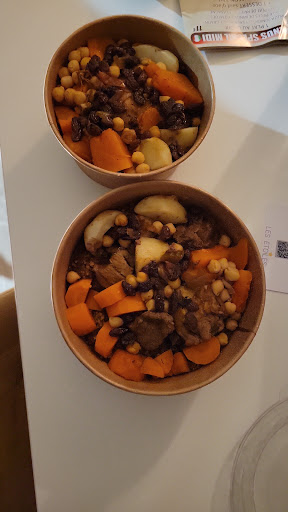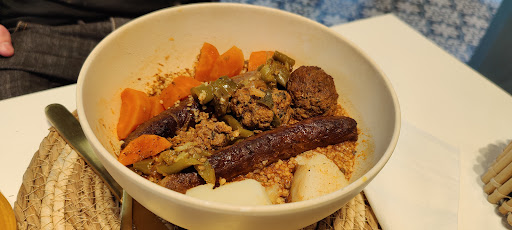 Read moreNous avons eu le plaisir de partager notre repas de réveillon de Noël à 6 (on aime faire des réveillons différents) autour d un délicieux couscous royal, de thé à la menthe et de pùtisseries orientales préparés avec soin par l équipe de 1001 graines. Ce fut un sans faute, tant par le goût des aliments, la qualité de l accueil (ils ont un vrai sens du service client, ce qui devient rare de nos jours, c'est d autant plus appréciable, ils sont aux petits soins pour leur client) que de la quantité préparée. La saveur des légumes était également au rdv. Ce sont de trÚs beaux morceaux de viandes généreux qui ont accompagné ce coucous royal. Le couscoussier mis à disposition a permis de faire réchauffer l ensemble tranquillement à la maison.