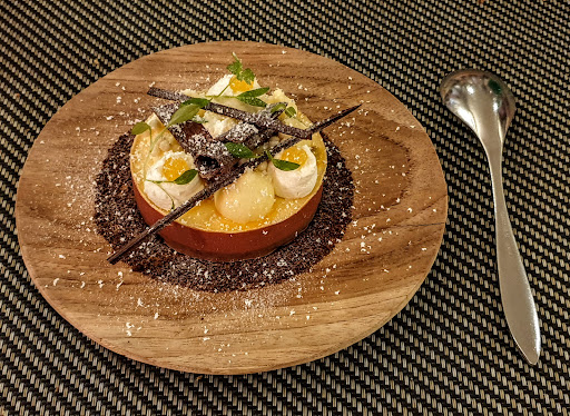 Une belle carte de boissons et d’apéritifs sera accompagnée vos différents plats durant votre dégustation. Nous avions pris deux menus à 27€, se composant d’une entrée, d’un plat ainsi qu’un dessert. Au delà d’un visuel équilibré et harmonieux les flaveurs et senteurs des plats mettent en éveils vos papilles dès l’entrée. Une bonne diversité de texture ainsi qu’un panel complexe de saveurs ravivent le palais du consommateur. Un vrai voyage et une belle émotion s’y dégage à chaque bouchée. Les desserts sont très bien exécutés. Le finger rocher par exemple, proposé actuellement dans ces menus, vous permettra de déguster une merveille d’onctuosité le tout avec un dosage en sucre maîtrisé.