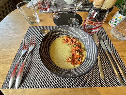 Quelques remarques (très personnelles)... pour le personnel justement :) : les verres d'eau (avec des lignes rouges) jurent totalement avec le reste. Proposez le pour les enfants ils adorent, mais ce n'est pas assez classe pour l'environnement que vous avez créé, et graphiquement inapproprié. Préférez des verres simples, plus fins, en accord avec le côté haut de gamme du reste. Dans un endroit aussi chouette, j'ai été surpris des appellations des menus (menu à 42€, menu à 55€), qui obligent à dire le montant du menu choisi à haute voix, ce n'est pas très "classe". Donnez leur des prénoms sympa à ces menus, peut être les noms des enfants de la famille, puisque le restaurant met un points d'honneur à parler de son origine familiale. Mais le montant dans le nom en lui même, ce n'est pas approprié pour ce standing, même si j'imagine que c'était une stratégie commerciale au début. Vous pouvez mettre en avant les prix autre part, mais pas dans le nom. attention aux petites fautes de services. (les dames à servir en premier, sauf occasion spéciale etc) , ainsi que la bouteille de vin posée sur un comptoir derrière sans nous prévenir, et pas d'attention particulière pour nous resservir une fois les verres vides. J'ai dû me lever, aller chercher notre bouteille, et nous resservir.