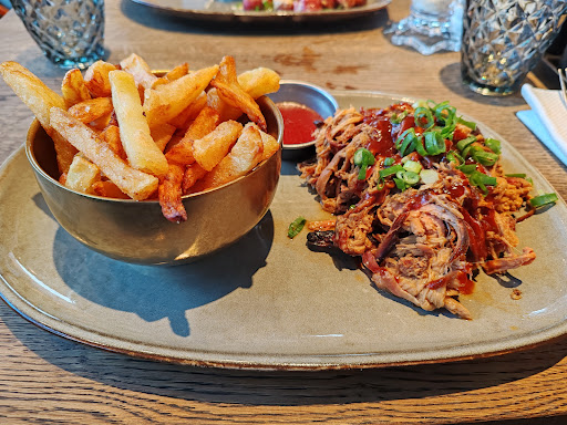 Visited en route home to the UK. Friendly English speaking staff who were very accommodating. We first asked to be seated outside but got a little terrorised by a wasp and they were more than happy to relocate us inside. Food was delicious. Kids options were nuggets or pulled pork with either frites or mac n cheese so both of my two were happy! I opted for the pork belly and hubby went for beef brisket. Very tasty and filling. The pineapple crème brûlée was the perfect ending....